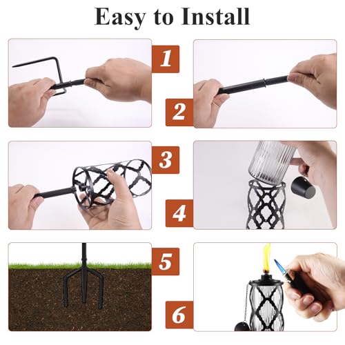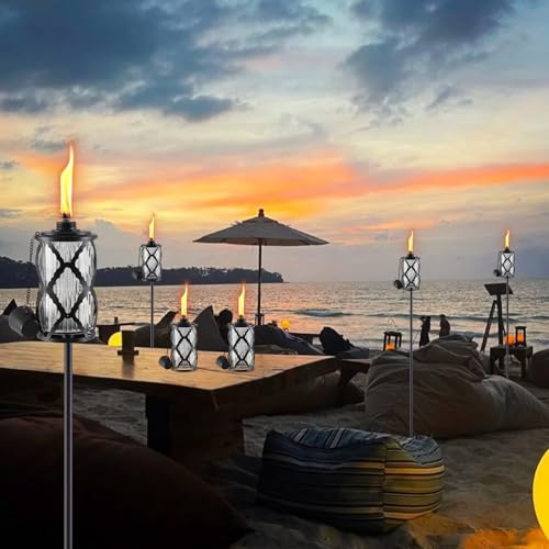- Premium Material:These metal citronella outdoor torches are made of high-quality metal & clear glass, rust-proof, durable, and lightweight. Came with long-lasting fiberglass wick & Metal fire extinguishing cover (Gentle Reminder: Please inject fuel in advance before use and soak the wick for 5 minutes to ensure optimal performance)